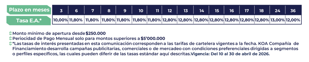 - ¡Invierte tranquilo! Nuestro CDT KOA protege tu dinero con nuestro Seguro de Depósitos Fogafín.